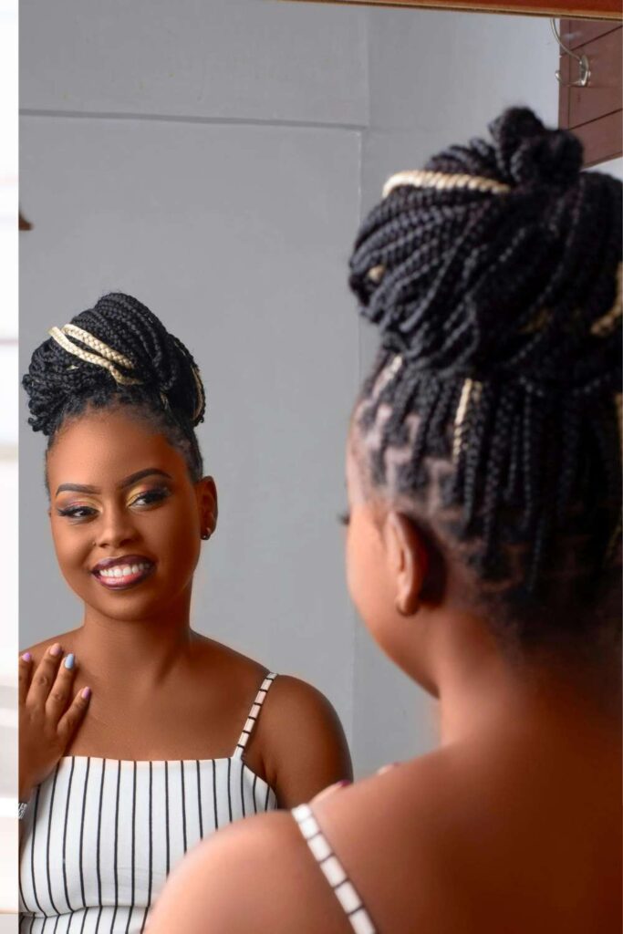 Knotless braids or small box braids are great options for work because they look neat and elegant while still being easy to maintain. These styles can also be styled into buns, low ponytails, or updos that look appropriate for professional environments.